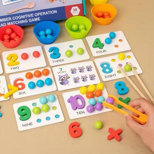 Sorteer de figuren netjes op kleur door ze met de knijper naar het juiste bakje te verplaatsen. Leer spelenderwijs optellen en cijfers herkennen.