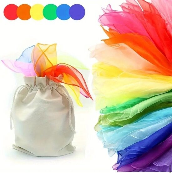 Montessori sjaaltjes in katoenen tasje 7 stuks - danssjaaltjes - montessori - jongleersjaals - sensorische sjaal