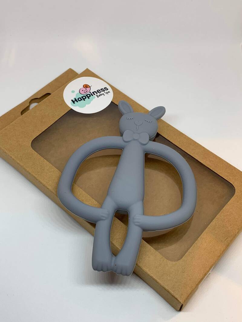 Silicone bijtring 2 in 1 - Konijn blauw grijs