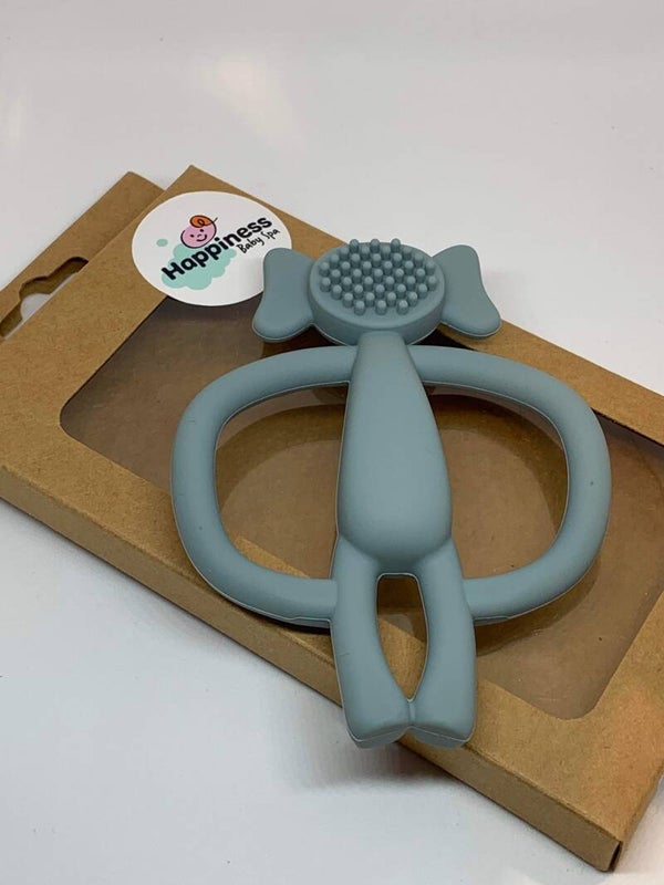 Silicone bijtring 2 in 1 - Olifant licht blauw